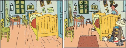 In het doosje vind je 24 kaarten. 12 wereldberoemde schilderijen van Europese schilders zijn opnieuw getekend. En daarna nog een keer; maar dan met in ieder schilderij 30 verschillen. Alle verschillen zijn relevante woorden. Op de stoel in het kamertje van van Gogh ligt een poes en in het schilderij van Breugel staat het raam open. Alle in totaal 360 verschillen staan uitgeschreven in het bijbehorende lesboek. Hier vind je ook woordenlijsten en leuke informatie over de kunstenaars en de schilderijen. Dit spel kan je prima spelen met zowel beginners als gevorderden. Jong en oud, van analfabeet tot hoog opgeleide cursist; iedereen vindt dit fantastisch om te doen en om steeds te herhalen. Cursisten hebben tijdens het spelen niet meer in de gaten dat ze aan het leren zijn, zo leuk is het!
